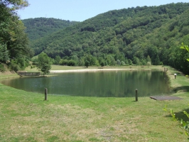 Lancé au printemps 2023, le circuit de randonnée de Leucamp nous rappelle l'existence passée d'une activité industrielle qu'on a peine à imaginer en ces lieux tant la nature y a repris ses droits, et de fort belle manière : la mine.Impossible de la manquer lorsqu'on arrive dans le cœur du village de Leucamp : la Maison des mineurs de la Châtaigneraie s'élève au pied de l'église, à la surprise de nombre de visiteurs qui se demandent sans doute quelles cicatrices ont bien pu être infligées à cette si jolie nature. Qu'ils se rassurent, quasiment plus rien ne subsiste de l'exploitation du wolfram, sinon les souvenirs qu'en ont gardé les anciens de la région.Pour en savoir autant qu'eux ou presque sur cette étonnante aventure, née fortuitement de la maladresse d'un cireur de parquets, il ne vous en coûtera que 2 € : c'est l'insertion de votre obole dans le monnayeur qui déclenchera la scénographie de 35 minutes que renferme la jolie bâtisse.Mais au fait, c'est quoi, le wolfram ? À vrai dire, on connaît mieux le nom de la poudre noire qu'on extrait de ce minerai : le tungstène. Quasiment indestructible, le tungstène entre dans la composition des aciers les plus résistants. On comprend ainsi pourquoi la découverte d'un gisement de wolfram aux prémices de la Première Guerre mondiale fut rapidement concrétisée par son exploitation...En 1959, la concurrence étrangère ayant compromis sa rentabilité, la mine ferma définitivement ses portes. Soixante-trois ans plus tard, l'itinéraire de randonnée pédestre "Du granit au wolfram" perpétue le souvenir de cette page d'histoire qui a transformé la vie de ce petit coin de Cantal. Il complète agréablement la découverte de la Maison des mineurs, mais il procure surtout un agréable bain de fraîcheur en été car les trois-quarts de son parcours de 11 km sont ombragés. Les points de vue sur les environs, particulièrement sur la verdoyante vallée du Goul et le nord de l'Aveyron, y sont fréquents, et l'on profite du patrimoine bâti traditionnel de la commune, dans le village et les hameaux rencontrés en chemin.À peu près à mi-chemin, le site de la Croix de Trapouet propose une aire de pique-nique fort agréable. Mais en vous en éloignant de 2 km de l'itinéraire à partir du hameau de Bancarel, vous pourrez profiter du cadre enchanteur du plan d'eau de Maurs pour faire votre pause déjeuner. Une plage et une aire de jeux y ont été aménagés autrefois, mais l'étang a désormais retrouvé l'apparence d'un espace de nature intacte, au cœur d'un vallon encaissé et isolé.