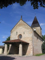 Cette église possède un auvent (porche à galonnière) remarquable datant du 15ème siècle. Celui-ci est soutenu par des piliers dit "pattes d'éléphant". A l'intérieur de l'église dans la chapelle nord, on peut noter deux curieuses têtes humaines sculptées.La très ancienne Abbaye de Saint-Pierre-hors-les murs à Mâcon possédait un prieuré à Saint-Jean-sur-Reyssouze. C'est vraisemblablement Humbert, religieux de cet Abbaye qui fit construire cette église paroissiale à la fin du 12ème et début du 13ème siècle. Cette église romane fut placée sous le patronage de Saint Jean-Baptiste. Le porche d'entrée possède une archivolte ajourée. L'église possède trois cloches. La plus grosse porte l'inscription suivante : " La fabrique m'a faite en 1890 pour que je salue les baptisés, que j'appelle le peuple, que je chasse les nuages. Je me réjouis avec les nouveaux mariés et je pleure les morts".L'église de Saint-sur-Reyssouze et sa cloche de 1763 ont été classées Monuments Historiques le 20 septembre 1943. Visite de l'intérieur possible (s'adresser à l'épicerie pour la clé).