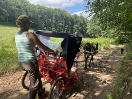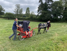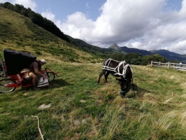 Rendre accessible à tous les sentiers cantaliens. Balade en escargoline au pas de l'âne pour PMR, personnes âgées, enfants à partir de 3 ans, personnes aux conditions physiques déficitaires.Avec Pogo, Eole et une escargoline, nous allons vous permettre d'accéder à de nombreux sentiers dans le Cantal. Vous pourrez alors accompagner vos ami(e)s randonneurs même en altitude, ou profiter d'une balade même longue avec vos enfants qui prendront plaisir à voir défiler les paysages au rythme de nos grandes oreilles, découvrir la beauté des volcans sans contrainte physique. Nous vous proposons de nombreux itinéraires à la demi-journée ou journée avec pique-nique ou restaurant.