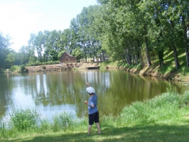 Carpes surtout et autres gros poissons (no kill). Hameçons sans ardillon.Accès autorisé à une moitié de l'étang seulement, l'autre étant réservée aux clients du camping.