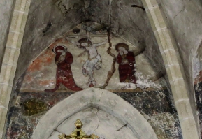 L'église consacrée à Saint Georges remonte au début du Moyen-Age. Elle a été régulièrement modifiée au cours des siècles, conservant son élégante structure, dans un environnement dégagé. L'intérieur présente des fresques et litres funéraires très rares.Bâtie entre le XIIe et le XVIe siècle et maintenant classée aux Monuments Historiques depuis 1907, cette église étonne par sa construction singulière et la richesse de sa décoration intérieure. Les fresques et stalles qui datent du XVIe siècle ont une iconographie exceptionnelle, visages sculptés, culs de lampes, grand portail, avec des dons de personnages marquants du village (stalles, autel, chemin de croix)Seul le chœur n'est pas accessible aux personnes en fauteuil.
