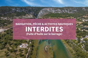 Toute l'année tous les jours.Navigation, pêche et toutes activités aquatiques actuellement interdites par arrêté interpréfectoral jusqu'au 17 octobre à la suite d’une fuite d’huile sur un transformateur électrique du barrage de Quinson, sur le Verdon.