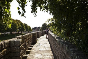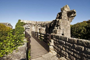 Faites le tour des remparts de la cité médiévale…Commencée au XIV ème siècle, l'enceinte dans son aspect actuel s'étend sur 1 300 m ; elle est percée de quatre portes aux 4 points cardinaux : Saint-Michel à l'est, Vannetaise au nord, Bizienne à l'ouest et de Saillé au sud. En 1848, une ouverture supplémentaire est ouverte au sud-ouest des courtines : c'est la poterne du Tricot. Les remparts sont classés au titre des monuments historiques depuis 1877.Exemple de l'architecture militaire bretonne au moyen-âge, les remparts de Guérande sont flanqués de 6 tours et 4 portes. Savez-vous qu'on la surnomme parfois la Carcassonne de l'Ouest ? Des douves longent encore les remparts, de la Tour Théologale à la Porte Bizienne, donnant une idée partielle de la physionomie de la ville au XIV ème siècle. En effet, Guérande n'a pas toujours été entourée de remparts. C'est en 1343, que le Duc de Bretagne Jean IV de Montfort ordonne à Guillaume de Verger, capitaine de Guérande, d'entourer la ville de remparts.La Porte Saint-Michel reste le symbôle de cette enceinte fortifiée. Transformé en logement fortifié à l'intention du Gouverneur de la Ville, cette porte du XVèmesiècle comme en atteste les marques de tâcherons de cette époque, donne sur la route de Saint-Nazaire et a été entièrement restaurée. Elle abrite depuis 1928 le musée de Guérande.