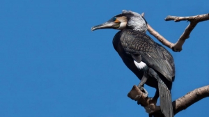 Taille : 90 cmEnvergure : jusqu’à 150 cmPoids : 2000 à 2500 grAge : 20 ans maxAspect :Oiseau aquatique de la taille d'une oie, le Grand Cormoran est presque complètement noir avec des reflets métalliques bleutés et un peu bronze, discernables à faible distance.En plumage nuptial, il arbore une gorge blanche, et une tache blanche sur la cuisse, qui disparaît souvent dès juin. Cette grande tache blanche, portée par les deux sexes, sert de signal au moment des parades. En hiver, ces marques blanches disparaissent sur les cuisses et celle de la tête diminue, ce qui rend difficile la distinction avec le Cormoran huppé, pourtant plus petit.Le Grand Cormoran possède un bec jaune puissant doté d'un crochet acéré à l'extrémité, et donc bien adapté à la capture des poissons.Le grand cormoran vit sur les côtes rocheuses ou sablonneuses, dans les estuaires, près des lacs et des grands cours d'eau. Il niche sur les falaises et les îles rocheuses, et se nourrit dans les eaux abritées. Il hiverne le long des côtes.Le grand cormoran se nourrit principalement de poisson. Il plonge pour capturer sa proie avec le bec, et il est capable de rester sous l'eau pendant plus d'une minute. Il remonte le poisson à la surface afin de l'étourdir en le secouant et de le lancer en l'air pour le retourner avant de l'avaler.Cette espèce est grégaire et niche en colonies sur les corniches des falaises, dans des arbres, sur les côtes ou à l'intérieur des terres.
