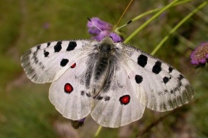 Grand papillon blanc et noir dont l'aile postérieure est ponctuée de rouge, l'apollon est emblématique de nos montagnes. Il s’observe facilement de mai à septembre dans les pelouses et éboulis. Il reste commun dans les Alpes mais s'est beaucoup raréfié ailleurs. Il semblerait qu’il monte en altitude et/ou avance sa période de vol pour compenser le réchauffement actuel. Il remonte pour éviter les fortes températures et pourrait donc ne plus trouver de milieux propices à son développement. C’est une espèce protégée et sa capture est interdite.