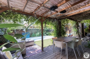 Dans la Ville Rose , avec une décoration moderne, cette maison, orientée vers le jardin, avec piscine et sauna à infrarouge, est un havre de paix. Une fois passée la porte, un autre univers s'ouvre à vous, celui du co-living ! Proche de l'hôpital Purpan, de Blagnac, du réseau périphérique, tout peut se faire à vélo le long de la Garonne (v'lib dispos à proximité) en bus direct centre ville ou avec le Tram. L'aéroport est à 10mn ainsi que l'hyper-centre Tram+métro. Jardin clos et aire de stationnement privée devant la maison (2 places).- Au rez-de-chaussée : entrée, cuisine intégrée ouverte sur le séjour et sur le salon donnant sur une grande terrasse couverte, buanderie avec lave-linge et sèche-linge. Chambre-studio : lit double en 140*190cm, climatisation réversible, bureau, ordinateur, réfrigérateur, micro-ondes, bouilloire, douche, vasque et WC. Cette chambre possède aussi une terrasse et donc un accès direct au jardin.- A l'étage, climatisation dans le couloir : 3 chambres avec chacune 1 lit double en 140*190cm et un bureau, dont une avec un canapé convertible en 140*190cm et un ordinateur, salle d'eau, WC séparé.Accès au sauna à infrarouge avec mur en briques de sel de l'Himalaya rétro éclairé. Piscine privée de 2.8 x 5m, ouverte de mai à septembre avec alarme. Une application est à votre disposition pour régler les lumières extérieures et la TV (accès à Netflix, Canal+, Bein...).La TV est équipée d'une enceinte et 2 radios sont à votre disposition.Les chambres du premier étage sont fraiches grâce aux ventilateurs plafonniers.