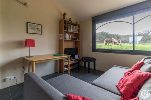 En pleine campagne, à 3km seulement de Muret ! Chevaux sur place. Facilement accessible par l'autoroute A64 (3km), le Domaine du Rayat n'est qu'à 22km du centre historique de Toulouse. Là, vous serez en prise directe avec la nature ! De vos fenêtres, vous pourrez voir les chevaux et l'âne courir dans les prés. Le sentier de grande randonnée de la Via Garona traverse la propriété ; il vous sera facile de partir vous balader directement depuis le gîte. Au calme, vous pourrez vous ressourcer et vous détendre au bord de la piscine, que vous partagerez avec les propriétaires et leur famille. Un ping-pong, un portique et un trampoline sont également à partager avec les enfants de la maison qui vous accueille. Des balades en attelage vous sont proposées par votre hôte, passionné par cette discipline (50€ la 1/2 journée). Au rez-de-chaussée : pièce de séjour (canapé convertible pour 2 personnes en 140cm, poêle à bois) avec coin-cuisine, WC avec lave-mains. A l'étage : une chambre (1 lit pour 2 personnes en 140cm), salle d'eau ouverte sur la chambre. Chauffage électrique. Terrasse privative, aire de stationnement. Piscine commune avec les propriétaires : non utilisable avant mi-juillet (victime de la grêle, travaux à venir)