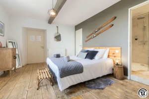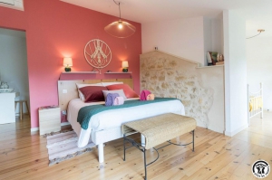 4 chambres d'hôtes doubles dont 1 suite parentale 2-3 personnes avec piscine en bois massif immergé face au Pic du Cagire et à la chaîne des Pyrénées