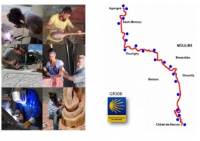 Le GR®300, itinéraire secondaire de Saint-Jacques-de-Compostelle, traverse le Bocage Bourbonnais du nord au sud, d'Agonges à Châtel-de-Neuvre, ce tronçon est ornée de sculptures.Le sentier de sculptures accueillera à terme une cinquantaine d'œuvres sur une partie du GR®300, chemin de Compostelle qui traverse le département de l'Allier. Sur ce parcours de 41 km entre Agonges et Châtel-de-Neuvre, plus de vingt sculptures sont déjà été installées. Chaque artiste a réalisé sa sculpture sur la place de village pendant une semaine d'atelier avec l'aide d'un jeune stagiaire, issu du territoire, qui participe ainsi au processus créatif.