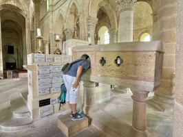 UNIQUE ! « Débredinoire » vient du mot « bredin », signifie « simple d’esprit » en dialecte bourbonnais. La légendaire débredinoire, offre l'opportunité à chacun de retrouver toute sa santé mentale et de chasser sa "Berdinerie" !« Débredinoire » vient du mot « bredin », signifiant « simple d’esprit » en dialecte bourbonnais. Au VIIème siècle, un évêque celte dénommé Ménulphe, passa par le village, alors nommé Mailly et y mourut. Ce saint homme était réputé pour rendre leurs esprits aux personnes un peu dérangées. Le village est alors rebaptisé Saint-Menoux et une abbaye de Bénédictines est créée au Xème siècle pour accueillir les pèlerins. Dans le sarcophage contenant les restes de Saint-Menoux autrement, appelé Saint-Ménulphe, vous trouverez un trou en demi-cercle dans lequel les « simples d’esprit » passent la tête afin de recouvrer leur santé mentale : chasser toute leur « bredinerie » ou traiter les maux de tête. Fidèle serviteur de Menulphe, Blaise, simple d'esprit (localement dit « bredin »), entreprit de percer un trou sur le flanc du sarcophage du saint homme, pour y passer la tête et continuer à l’honorer. A force de « visites » et monologues, la légende dit que Blaise en serait ressorti "débrediné" grâce à un ultime miracle du défunt... Depuis, le village de Saint-Menoux est devenu lieu de « pèlerinage », et il est de bon ton de passer la tête dans la débredinoire afin d'y abandonner sa folie. Gare à ne pas toucher les bords en y glissant votre tête, au risque d’hériter de toute la folie des visiteurs précédents. Il s’agit d’un patrimoine unique en son genre et d’une science bien incertaine...