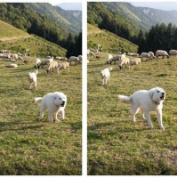 Le rôle des chiens de protections des troupeaux (souvent nommés patous, nom de la race de chien) est de protéger les troupeaux de la prédation (loups, lynx, chiens..), de jour comme de nuit, en alpage ou plus proche des villages. Les chiens sont souvent plusieurs, notamment pour faire face à des meutes de loups. SON FONCTIONNEMENT : 1. Il court et approche pour identifier toute menace 2. Il aboie pour alerter et dissuader COMPORTEMENTS À ADOPTER LORS D’UNE RENCONTRE : 1. Dans la mesure du possible, contournez le troupeau sans courir, 2. Signalez-vous en parlant calmement pour ne pas surprendre le chien.Si le chien approche, arrêtez-vous, ne le fixez pas dans les yeux, cacher vos bâtons de marche (toutes agressions amplifieront le comportement agressif de ces chiens.)
