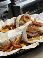Fast good de produits frais et locaux. Burgers Gourmets, Frites fraîches, viandes grillées au barbecue et desserts gourmands.