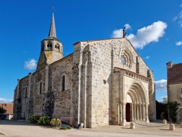 Visite libre avec document et panneau d'information. En entrant dans l'église de style roman bourguignon, on est accueilli par un personnage étrange, appuyé sur un bâton et entouré de deux reptiles.Un aspic menaçant et un basilic surmonté d'un coq triomphant. Il s'agit d'une représentation symbolique de saint Jacques le Majeur. Les animaux rappellent deux légendes se rattachant au pèlerinage de Compostelle : celle d'Hermogène, converti par l'apôtre du Christ, et celle du "pendu dépendu" que répandait au Moyen Âge les pèlerins. Les chapiteaux du XIIe siècle sont sculptés avec naïveté : ils empruntent au règne végétal avec des feuilles de vigne, des acanthes... et au règne animal (MH). Église faisant partie de la Route des Églises Peintes du Bourbonnais.