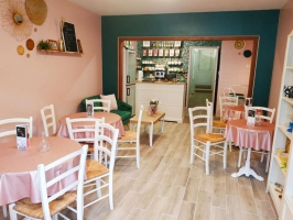 Salon de thé, pâtisseries maison, idées cadeaux, glaces artisanales, grande diversité de thés bio et commerce équitable.Petits menus proposés l'été : spécialité la "Tourte Médiévale" (brunch sur réservation).