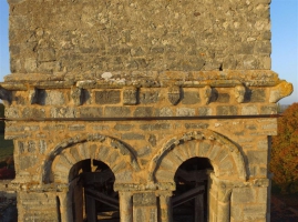 L’église Saint-Martin de Senat est un édifice de style roman du XIIe siècle desservant anciennement la paroisse du diocèse de Bourges, et dépendance de l’abbaye bénédictine de Menat. Le plan se décompose en une nef de trois travées possédant un vaisseau central et deux collatéraux, un transept non saillant, une courte travée de chœur terminée par une abside en hémicycle flanquée d’une absidiole, au sud. Le croisillon nord du transept et l’absidiole ont été rebâtis sur un plan rectangulaire. Une sacristie est adossée au mur sud de la nef. Le clocher, de plan carré, et percé à ses deux étages de baies romanes, en plein cintre garnies de colonnettes, surmonte la croisée du transept. Seule partie de l’édifice inscrite au titre des monuments historiques, il est pourtant coiffé d’un toit en appentis peu valorisant, qui remplaça une flèche en pierre démolie à la Révolution. La visite de la chambre des cloches permet d’observer les vestiges des trompes qui faisaient passer le plan carré du clocher à celui, octogonal de la flèche. Le répertoire décoratif est typique de l’époque romane, avec des chapiteaux garnis de feuillages ou de personnages, sur le pourtour du clocher, des cordons de billettes au-dessus des fenêtres en plein cintre, et des modillons soutenant les corniches des murs gouttereaux et de l’abside. Le portail occidental est daté du XIVe siècle. Le chœur et le transept sont voutés en plein cintre. La nef et les bas-côtés ont tardivement été recouverts d’un plafond en planche de bois, suspendu à des solives, masquant une charpente à poinçons moulurés, pouvant être datés des XVIe et XVIIe siècles.