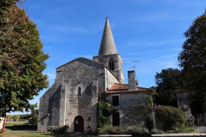 L'église primitive devait se composer de deux travées sans collatéraux et d'un chœur. Elle devait être couverte d'une simple charpente apparente. Modifications au 12e siècle. A cet édifice a été ajoutée une travée portant clocher et couverte, sous celui-ci, d'une coupole octogonale sur trompe. Terminant l'église à l'est, le chœur rectangulaire est couvert d'une voûte angevine du 13e siècle. A la suite du mur de la nef vient une tourelle d'escalier montant au clocher.Périodes de construction : 11e siècle, 12e siècle, 13e siècleEléments protégés : classement par arrêté du 28 mars 1923