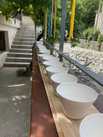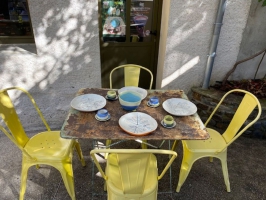 Toutes les pièces exposées sont entièrement façonnées à la main et sur place par Allison et Laurent. Ce sont des objets pour le quotidien conçus pour le confort et les plaisirs à partager pendant des moments simple et chaleureux. Les argiles utilisé sont la porcelaine et le grès.