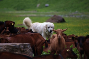 Le rôle des chiens de protection des troupeaux (souvent nommés patous) est de protéger les troupeaux de la prédation (loups, lynx, chiens..), de jour comme de nuit, en alpage ou plus proche des villages. SON FONCTIONNEMENT : 1. Il court et approche pour identifier toute menace 2. Il aboie pour alerter et dissuader COMPORTEMENTS À ADOPTER LORS D’UNE RENCONTRE : 1. Dans la mesure du possible, contournez le troupeau sans courir2. Signalez-vous en parlant calmement pour ne pas surprendre le chienSi le chien approche, arrêtez-vous, ne le fixez pas dans les yeux, cachez vos bâtons de marche. L'agitation ou l'agressivité risque d'amplifier le comportement menaçant du chien, c'est pourquoi il faut rester calme.Ces chiens ne sont pas dressés pour attaquer mais pour dissuader.
