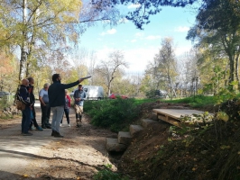 Le Parc travaille à la fois sur la revalorisation du chemin de Saint Jacques, mais aussi sur celle de la pierre sèche avec l’association des Artisans Bâtisseurs en Pierres Sèches dans le cadre du programme Laubapro. Dans ce cadre, le Parc a porté un projet de création de mobilier non pas urbain, mais rural, adapté à ce chemin, aux paysages et à l’identité du territoire Aubrac. A Lasbros, au Moulin de la Folle et au Roc des Loups, le bâtisseur en pierre sèche Sylvain Olivier, le menuisier Arnaud Mainardi et le concepteur Amaury Poudray ont travaillé ensemble pour la réalisation de 4 bancs, franchissements, espaces de repos et de contemplation qu’ils ont créés et imaginés avec les élus locaux et les chargés de mission du Parc naturel de l’Aubrac. Ces équipements ont vocation à inspirer d’autres projets ailleurs sur le territoire du Parc. Ils sont à destination des marcheurs, mais aussi des habitants qui en profitent tout au long de l’année, à proximité de leur lieu de vie.
