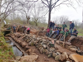 Aux côtés de la Communauté de communes Aubrac Carladez Viadène et de la commune de Saint Chély d’Aubrac, le Parc avait organisé un chantier participatif aux Cambrassats en mai 2023.En plus de remettre en état un muret en pierre sèche, le projet avait permis de valoriser une source et des abreuvoirs. En période d’intempéries, ce site devenait inaccessible en période hivernale, se transformant en marre qui occupait tout l’espace. Grâce à l’utilisation d’un hérisson, pierres clavées positionnées verticalement au sol, la terre est désormais maintenue sur place et ne bouche plus les évacuations. La solution technique de la pierre sèche s’avère être efficace.