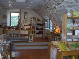 La boutique associative Terre de Mauripe propose toute l'année les productions des artisans - producteurs de Soudorgues : produits frais et transformés, miels, cosmétiques, artisanat autour du cuir, bois tourné et céramique.