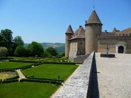 Château de l’an Mil (XIe-XVIIIe). Étonnant par son caractère militaire et ses jardins à la française, il offre à la visite de très belles pièces : la chambre Louis XIII, la cuisine médiévale, la chapelle (XVIIe) et le donjon avec sa voûte "en entonnoir".Après avoir été accueillis par notre équipe de guides, vous n’aurez plus qu’à vous laisser accompagner pour une visite guidée d’une petite heure. Vous commencerez votre visite face à l’imposante porte d’entrée, exceptionelle car composée de 2115 clous d’origine, surmontée de son fronton, portant les armoiries Virieu…vous voici maintenant dans la cour d’honneur du Château de Virieu. Vous êtes au cœur du château, au pied de son donjon. Vous apercevez à votre droite les canons offerts par Louis XIII en 1622, placés sous la galerie à Arcade en brique de style italien. Quelques pas et vous voici dans l'univers si calme de la Chapelle de Virieu. En entrant dans la Chapelle, vous découvrirez le chemin de croix sculpté par Stéphanie de Virieu à l'âge de 80 ans ainsi que la voûte étoilée en forme de barque renversée. En quelques pas, sous la galerie, vous accédez à l'ancienne cuisine, servant, de nos jours, de salle à manger. Vous y découvrirez la monumentale cheminée avec son arc surbaissé, sa plaque foyère du XIIIème, souvenir de l'antique Chartreuse de la Sylve Bénite. Vous pourrez également apprécier son mobilier avant d'accéder à la Grande Salle chargée d'histoire.La chambre du roi, pièce impressionnante et majestueuse, dénommée ainsi car le Roi Louis XIII y dormit en 1622, a conservé son aspect et une partie de son mobilier d'origine.Vous accédez ensuite à la Chambre blanche qui devait être une chapelle.La visite se termine vers le donjon, désormais lieu de mémoire consacré à la Résistance durant la période noire de l'occupation allemande de 1940 à 1944.