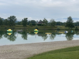 La diversité de ses aménagements attire familles et adeptes de sports plein air : baignade et locations nautiques, aires de jeux et pique-nique, parcours de santé/espace fitness, beach volley et tennis, pêche, mini golf, bar snack. BARBECUES INTERDITS.Profondeur jusqu'à 6 m, superficie 15 ha.Ouvert toute l'année, accès payant du 01/06 au 31/08. Activités autorisées : pêche, pique nique, tennis, jeux de boules, plate-forme plongeoir, parcours de santé, terrain de jeux collectifs, jeux terrestres avec jeux adaptés PMR, espace fitness, bar et restauration rapide. Baignade uniquement en été.Paillotes et plage aménagée.Activité estivale du 01/06 au 31/08 : - CHIENS et BARBECUE INTERDITS- Baignade surveillée- De nombreux jeux aquatiques- Pédalo : pour toute la famille ( pédalo 4 personnes pas d'âge minimum - gilets de sauvetage fournis) - Paddle- Balade en Rosalie : pour toute la famille- Barque Lire O'LacRenseignements et RESERVATIONS sur place au point location.Nombreuses animations durant la saison (Nuit du Lac en Août sous réserve des restrictions incendies, soirée karaoké...)Snack ouvert du 01/04 au 31/10.