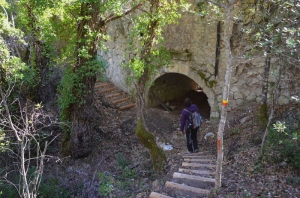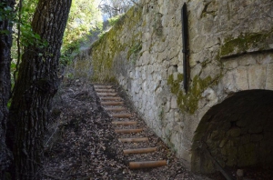 Vu d’en bas cela ressemble à un pont mais c’est bien l’eau de l’ancien canal de Provence terminé en 1875 qui passait par-dessus alors il s’agit bien d’un aqueduc. C’est un des nombreux ouvrages remarquables de cet ancien canal qui fonctionna jusqu’en 1969. C’est la prise d’eau du canal de Provence avec la création du lac qui a pris le relais pour acheminer l’eau jusqu’à Aix en Provence, Marseille, et de nombreuses villes du sud de la Provence.