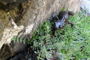 Cette salamandre est entièrement noire. Elle vit uniquement dans le haut Guil et autour du Mt Viso. Elle affectionne les zones humides qu’elle parcourt d’un rythme très lent le matin quand l’hydrométrie ambiante est la plus importante. Adaptée à la rudesse du climat et à une activité limitée, elle a la particularité de développer ses larves in utero sur une période de 4 ans. Sa faible répartition et la fragilité de son habitat font de cette salamandre un animal en danger et protégé.