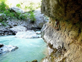 Un passage délicat et époustouflant ou le sentier a été taillé dans la roche, vous surplomberez la rivière Verdon aux eaux émeraude et tumultueuses dans un grondement de tonnerre. Passage inoubliable.