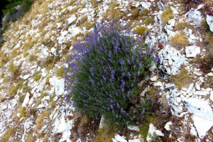La lavande sauvage, Lavandula angustifolia, est une plante herbacée de la famille des Lamiacées, endémique des zones montagneuses méditerranéennes. Son habitat naturel comprend des sols calcaires secs et ensoleillés. Cette plante aromatique présente une structure végétale adaptée à la xérophytie, caractérisée par des feuilles linéaires et des touffes buissonnantes. La lavande sauvage est appréciée pour ses propriétés médicinales, notamment ses huiles essentielles utilisées en aromathérapie.