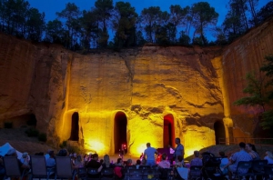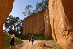 Au cœur de cette forêt de pins, dans ces falaises aux couleurs chaudes et lumineuses, ont été creusées à la force des bras des ocriers plus de 40 km de galeries. Vestige monumental de l'exploitation de l'ocre, site unique et admirable, ce labyrinthe mystérieux est aujourd'hui protégé. Aux Mines de Bruoux, un parcours de 650 m a été aménagé en toute sécurité. Ces galeries impressionnantes, voûtées, en forme d’ogive ou même en plein cintre, jusqu’à 15 m de hauteur, forment une véritable cathédrale minérale : une plongée dans l’univers esthétique de l’ocre qui rend hommage au travail des ocriers, ces mineurs de la couleur.