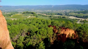 Ici, on domine la présence exceptionnelle d'ocres sous la forme de falaises richement colorées et de bâtis aux enduits multicolores qui constituent des forts points d'appel dans le paysage. Au loin se déploie la vallée agricole du Calavon avec ses cerisiers, ses vignes et ses vergers. Depuis la fin des années 80, les nombreux ouvrages et systèmes hydro-agricoles ont permis de sécuriser le rendement et la qualité des rendements de production alimentaire, puis d’évoluer vers des pratiques agro-environnementales. Avec le réchauffement climatique, la solidarité hydraulique entre territoires pour le partage de l’eau et sa gestion économe est aujourd'hui plus que jamais nécessaire.