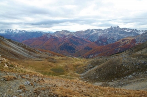 Le lac de Souliers offre un panorama exceptionnel. Ici, la vue en direction de la vallée d’Arvieux. Sur la droite, le pic du Béal Traversier domine la vallée. Au centre, la crête de Croseras plonge sur les gorges Guil. Et au fond, la pointe de la Saume et les pics de la Fonte Sancte, de Panestrel et des Houerts surplombent la vallée de Ceillac.