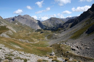 Les chalets d’alpage datent en général du début du XIXe s. Construit grâce à une forme d’entraide : la corvée, ils sont construits à partir de matériaux locaux comme la terre, le bois et la chaux. Dans la vallée d’Arvieux, les hommes y montaient fin juillet faire les foins. Les bêtes arrivaient à la mi-août, conduites par les vieux et les enfants qui restaient sur place jusqu’au démontagnage en fin septembre. L’activité principale était la production et la transformation du lait. A la fin du XIXe s., ce fonctionnement a disparu et les troupeaux ont été confiés directement aux bergers.