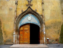 Au fronton est écrite la devise des Républicains «Liberté, égalité, fraternité » En effet, les insurgés varois contre le coup d’état de Louis Napoléon Bonaparte se réfugièrent dans la collégiale Saint-Pancrace lors de la « bataille d’Aups » du 10 décembre 1851. Lors de la promulgation de la loi de séparation de l’Eglise et de l’Etat en 1905, les Aupsois décidèrent tout naturellement comme d’autres communes du haut Var d’apposer la devise de la république française sur le portail de leur église.
