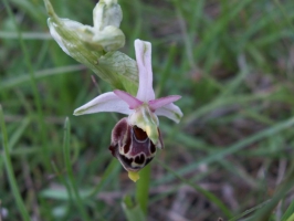 Une des particularités des orchidées tient à la spécialisation de leur fleur où tout tend à assurer la meilleure pollinisation possible au moindre coût énergétique. Le “nec plus ultra” est atteint chez les “Ophrys” où l’un des pétales ressemble à s’y méprendre (pour le pollinisateur moyen) au corps d’une dame insecte. En voulant lui faire un câlin, le mâle se colle le pollen sur la tête, qu’il disséminera en retentant l’aventure sur un pied voisin.