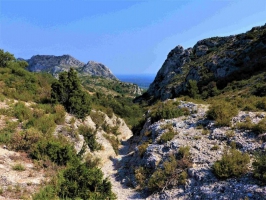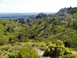 Le petit relief du Pas du Cerf, haut de ses 242 m, invite à suivre un sentier qui longe ses parois calcaires apparentes, tout en s'enfonçant dans un petit vallon propice à la formation de garrigue. Il offre alors un point de passage entre le piémont sud du massif des Alpilles et la plaine de la Crau qui s'étend jusqu'à la mer.