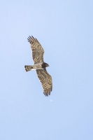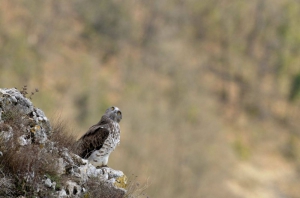Le Circaète Jean-le-Blanc (Circaetus gallicus) est un rapace de grande taille spécialisé dans la chasse aux reptiles, principalement les serpents. Excellent planeur, il se déplace habituellement sans battre des ailes, profitant au maximum de la brise et des ascendances thermiques, les ailes largement étendues. Il affectionne les milieux boisés, où il construit son nid, bordés de milieux ouverts qui lui servent de terrain de chasse : prairies pastorales, garrigues, pierriers et cultures sont abondantes en lézards et couleuvres. Oiseau migrateur, il passe l'hiver en Afrique, et revient dans les Alpilles de début mars à fin septembre pour se reproduire.