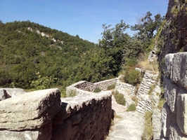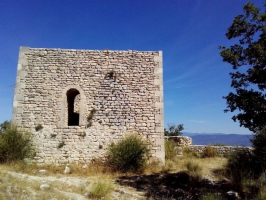 Le site castral de Saint-Pierre d’Auribeau est implanté sur un piton rocheux. Ce castrum, attesté dès 1004, est dit inhabité en 1333. La topographie d’ensemble correspond à un éperon barré. À l’extrémité orientale sont conservés les éléments monumentaux, fortifications et église, tandis que vers l’ouest s’étendaient en éventail les habitats villageois, protégés semble-t-il par un fossé. De plan carré, la tour est conservée sur près de 8 m d’élévation. La moitié supérieure ainsi que la porte d’accès aménagée à l’étage ont été l’objet d’amples restaurations récentes.