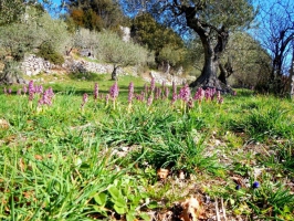 Cette orchidée sauvage aime bien les espaces d'herbes rases qu'elle n'hésite pas à coloniser. Il n'est pas rare de découvrir un grand espace herbeux occupé par une douzaine de ces plantes. On peut la retrouver sur les bords de route, peu de monde sait qu'il s'agit d'une orchidée, sauvage certes mais une orchidée... Au cœur de la garrigue, sa présence est moins importante car étouffée par une végétation rase et fournie. Elle fait partie des premières plantes à fleurir dès février.