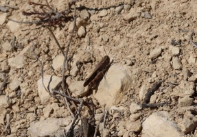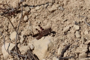 L’Oedipode automnale (Aiolopus strepens), contrairement à ce que son nom pourrait laisser penser, est visible toute l’année, avec deux pics de présence : d’avril à juin, puis d’août à octobre. Ce criquet trapu se distingue par ses fémurs postérieurs épais et ses tibias postérieurs toujours rouges. Ses ailes, cachées sous les élytres, sont d’un bleu pâle. Le mâle est un peu plus petit (18-24 mm) que la femelle (23-32 mm). Cette espèce préfère les milieux chauds et secs avec un faible recouvrement herbacé.