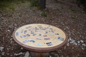 Sur cette table sont inscrites quelques grandes dates marquantes de l’histoire du Mont Ventoux :1882 : création de la route d’accès au sommet,1908 : organisation d’un grand marathon à travers le Ventoux,1967-1968 : construction de la tour emblématique au sommet.