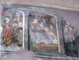 Reconstruite entre 1457 et 1494, l’église Saint-Antoine est inscrite au patrimoine des Monuments historiques. Son entrée est composée de deux colonnes décorées de motifs d’inspiration lombarde. Dans la nef, on peut admirer une fresque du XVIe s., qui illustre le culte de Saint-Jacques et le pèlerinage de Compostelle. Cette église paroissiale de style roman tardif s'agrémente d'un joli porche en colonnes de marbre rose avec de gros galets maçonnés au sol.