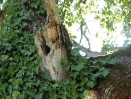 Avec leur bec droit, les pics décortiquent l’écorce des arbres pour s’y nicher ou débusquer des insectes mangeurs de bois (xylophages). Dans le Luberon, le Pic épeiche (noir, blanc et ponctué de rouge) côtoie le Pic épeichette (plus petit, moins de rouge), le Pic vert et le Pic noir (plus rare, comme une Corneille à calotte rouge). Véritables HLM à insectes et chauves-souris, ces arbres âgés accueillent une multitude d'habitants dans les trous de pics, les fentes des branches, sous le lierre...