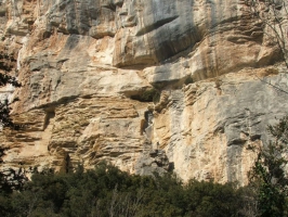 Les falaises environnantes présentent souvent des stries. On parle de "stratifications obliques". Celles-ci témoigent de l'origine marine de ces roches déposées dans la mer il y a 20 millions d'années et surtout de l'existence de courants sous-marins créant un paysage de dunes sous-marines, de talus et de de cheneaux au fond des eaux.
