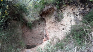 Cuire le calcaire pour faire de la chaux, voilà le principe ! Au bord du chemin, le talus est creusé d'une cavité aux parois rougies, dans la partie supérieure, et vitrifiées dans la partie inférieure. C'est un four à chaux qui a sans doute été utilisé pour un usage local. On ne connaît pas son âge. Plusieurs jours étaient nécessaires pour creuser ce type de four, construire une voûte en encorbellement, comme dans les bories, et placer les blocs de calcaire. La cuisson, entre 800°C et 1000°C, nécessitait une surveillance constante pendant environ 4 jours.