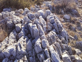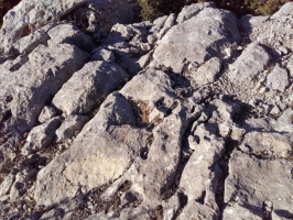 On qualifie de karstique une région de formation calcaire à la topographie originale, caractérisée par un drainage souterrain qui entraîne une corrosion de la roche. Par ici, nous observons un lapiaz. Cette formation géologique de surface est créée par le ruissellement des eaux de pluie qui dissolvent la roche ou par la cryoclastie (gel et dégel de l'eau infiltrée dans la roche). C'est ce qui forme ce grand entablement rocheux parcouru de failles et fissures.