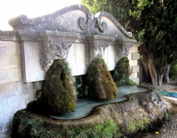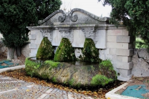 Cette fontaine relativement récente fut offerte au village en 1937 par la Fondation Laurent-Vibert qui oeuvra à la restauration du château de Lourmarin. D’aucun diront que ces têtes représentent les éléments naturels importants de la région : Rhône, Durance, Luberon. D’autres prétendront qu’elles évoquent trois divinités grecques Neptune, Apollon et Pan, dieu des troupeaux et des bergers. Le fait est qu’aucun écrit ne corrobore ni l’une ni l’autre de ces affirmations.