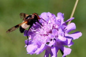 Cette Syphidae mesure entre 15 et 16 mm. Elle affectionne les zones boisées et les lisières d’étang. Les hormones qu’elle développe trompent les guêpes. Ce stratagème permet à la femelle de pondre à l’intérieur des nids de guêpes. La larve, une fois éclose, se développe en ectoparasite d'une larve de guêpe. Après quelques temps, elle se nourrit des cadavres de guêpes qui jonchent le fond du nid. C’est après une période d’hivernation qu’elle finit sa métamorphose et s’envole en quête de nourriture et d’un partenaire sexuel.